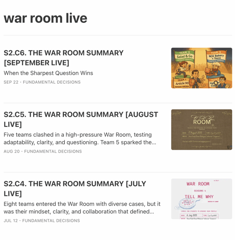 This isn’t about right or wrong—it’s about how we think. We question assumptions, challenge mainstream narratives, and explore what lies beneath the surface. The War Room Series brings this to life. Series 1 uncovers why businesses really fail—revealing patterns and mindset traps. Series 2 turns strategy into live-action gameplay across cities, led by Game Masters. Series 3 dives into how companies truly transform from the inside out. This is where curiosity meets strategy. Welcome to the War Room—where thinking gets serious.